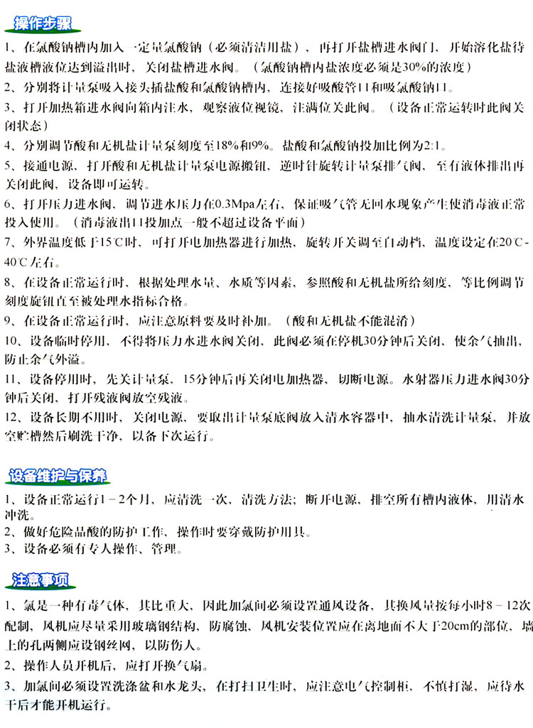 化学二氧化氯发生器操作使用说明