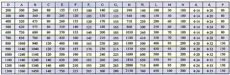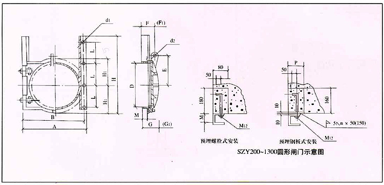 公称尺寸为200-1300的圆型闸门安装时注意如下内容: